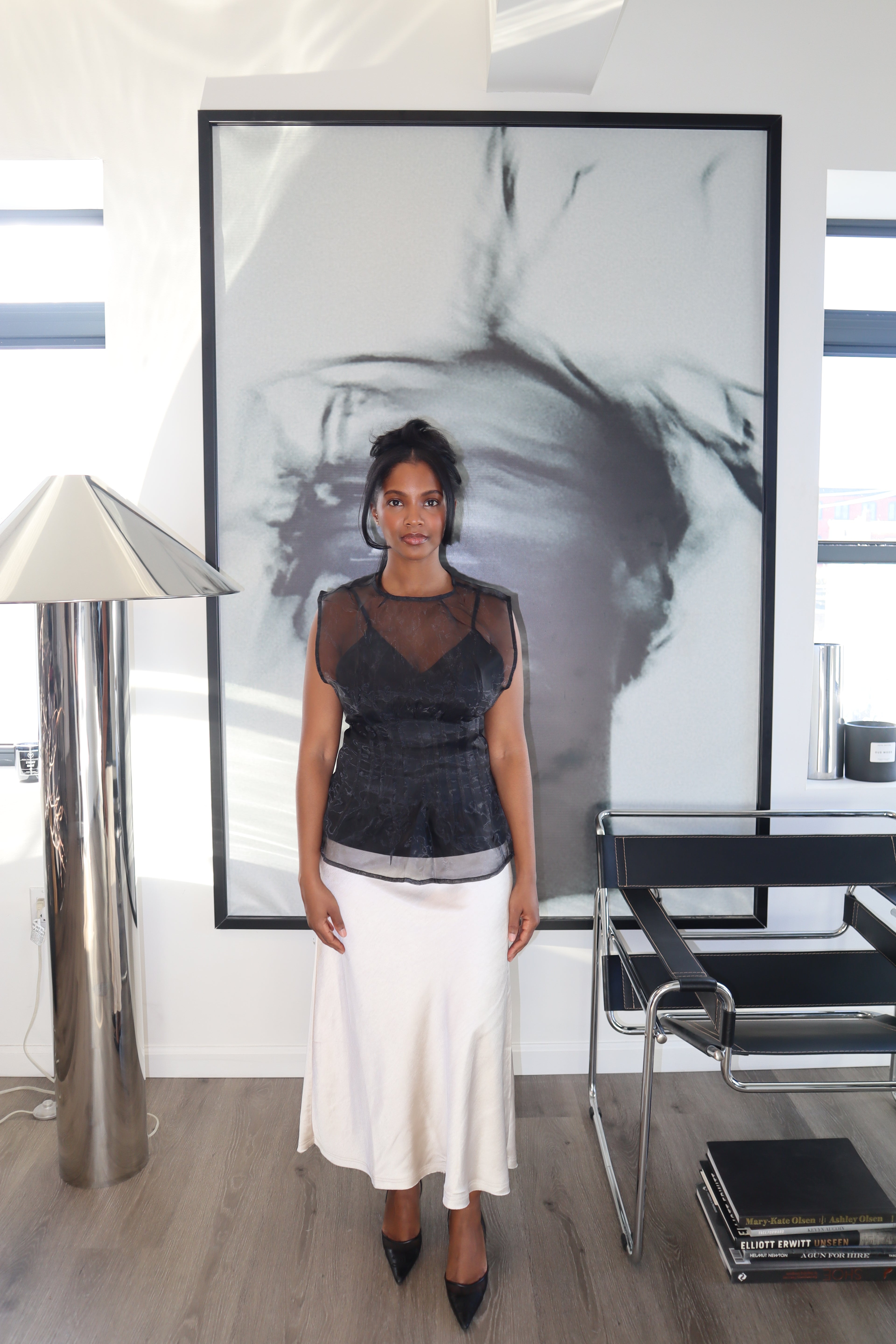 Sexy yet demure at the same time. Fabric feels great on my skin. Chose the black for several different look options.